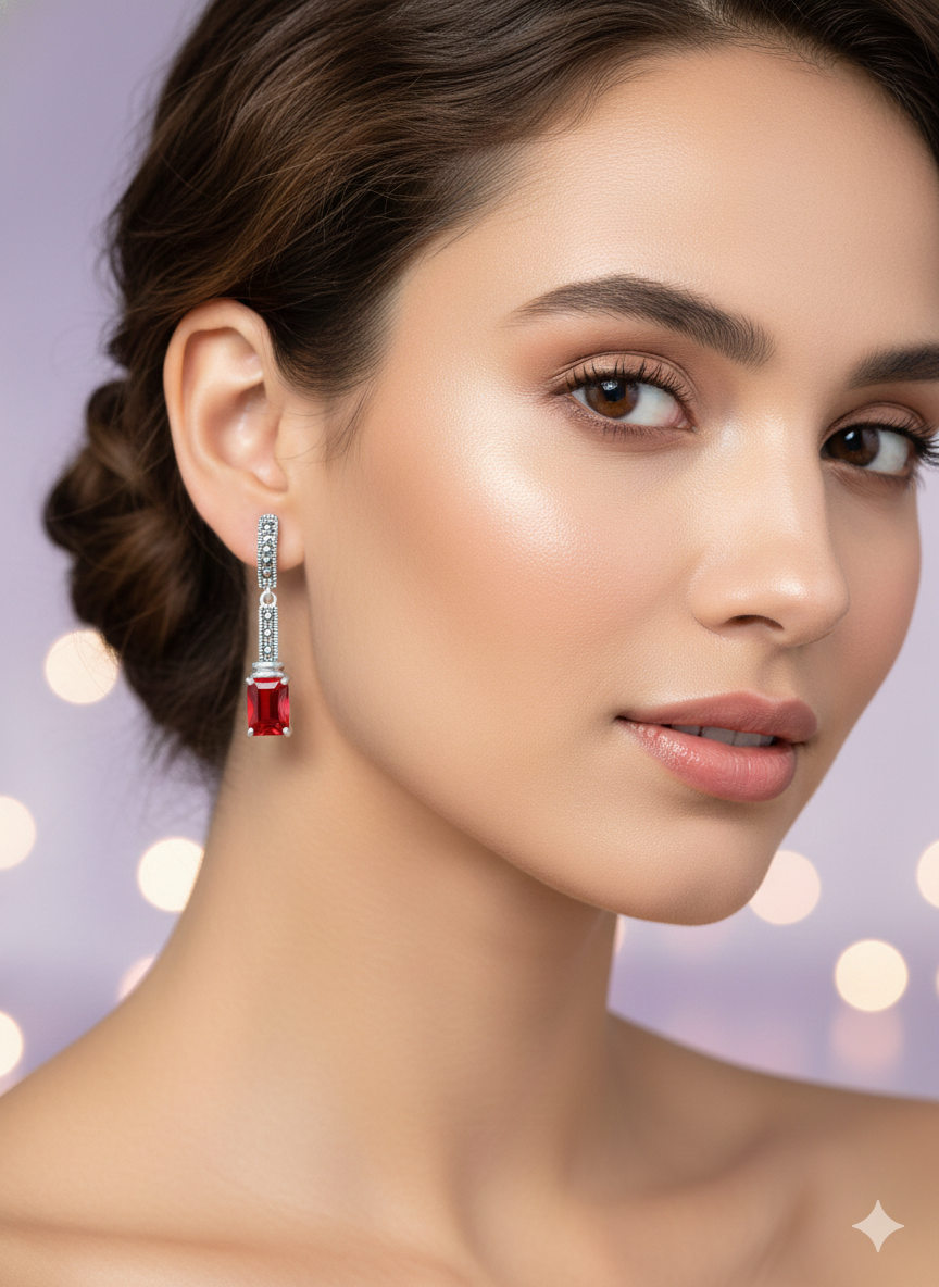 Introducing our Crimson Radiance Drop Earrings, crafted for those who appreciate timeless elegance. These earrings feature: