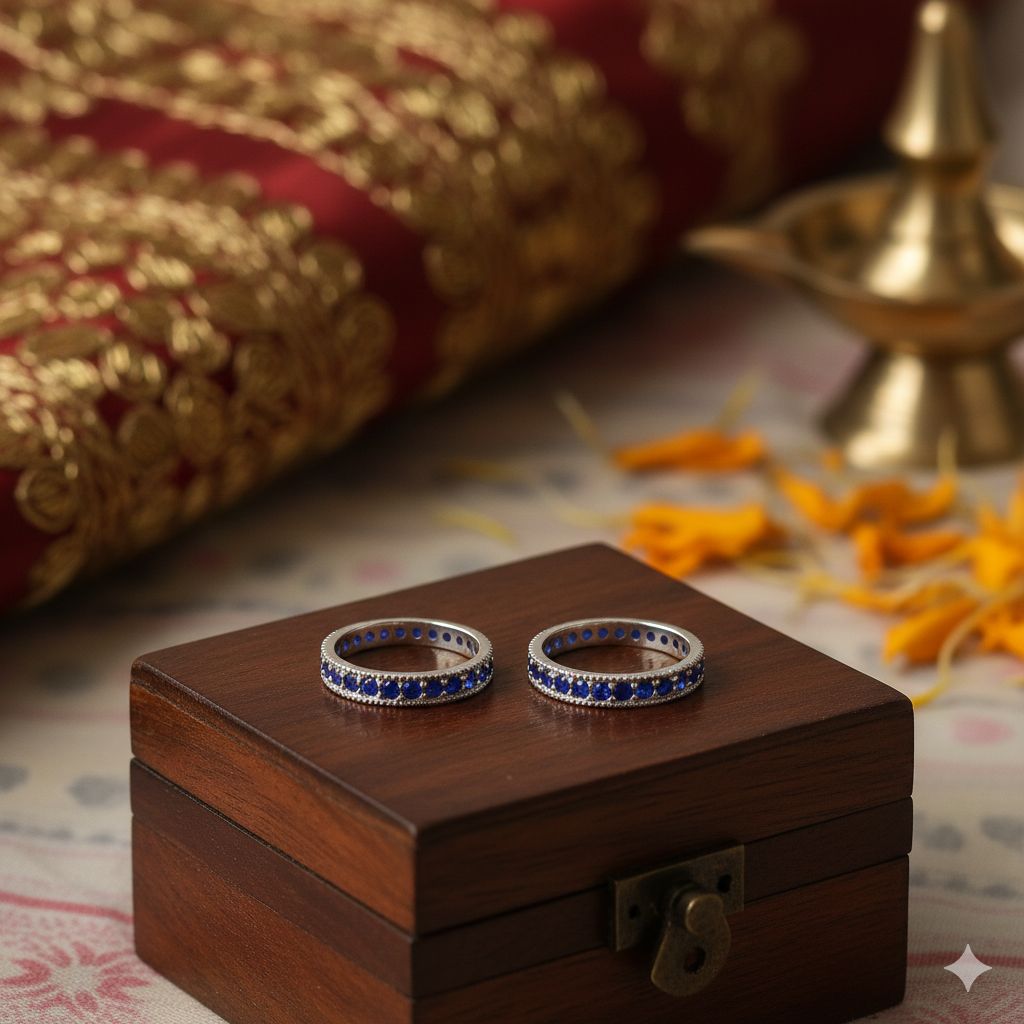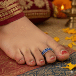 A beautifully handcrafted oxidised silver toe ring featuring deep royal blue stones set in a classic beaded design. Elegant, durable, and perfect for festive and everyday wear.